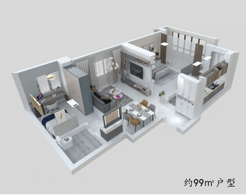 ◇ 建面约99㎡大两室,婚房、三口之家居住,性价比高、居住体验感佳,并且购房压力不会太大;