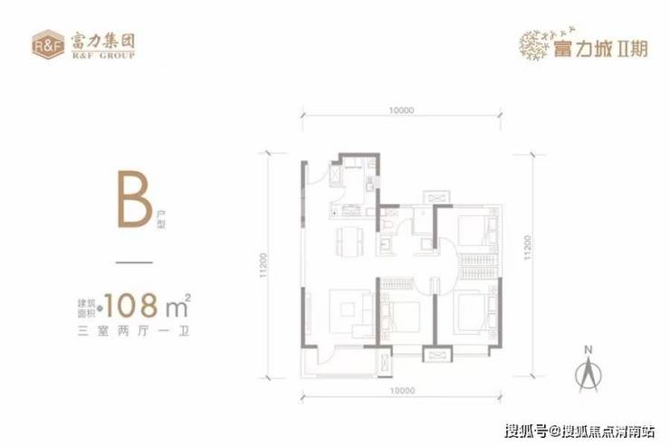 8、富力城,约108㎡三室两厅一卫,南北通透,毛坯62万