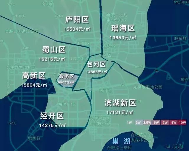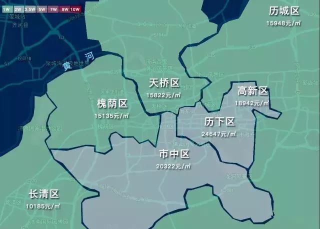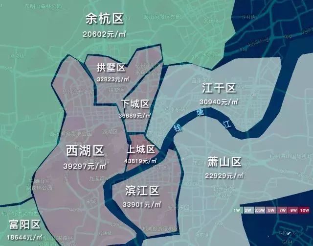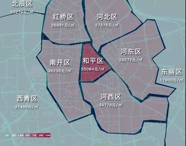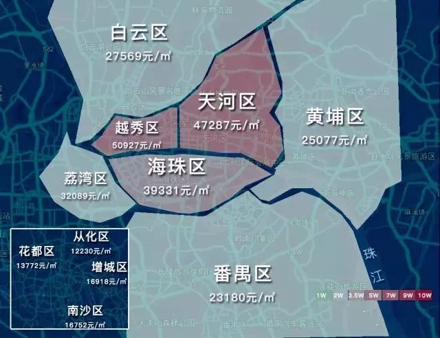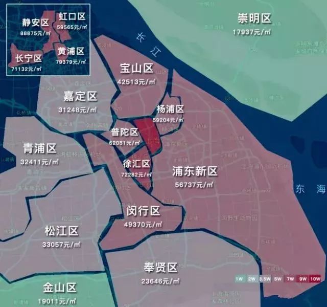 1、本文中大致颜色为界,低于10000元为浅绿色,高于20000元价格越高红色越深。