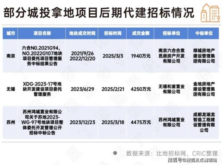 随着市场止跌回稳,潜在的开工空间、开工意愿在提升,部分地块存在拿地后2-3年才进行代建招标的情况。