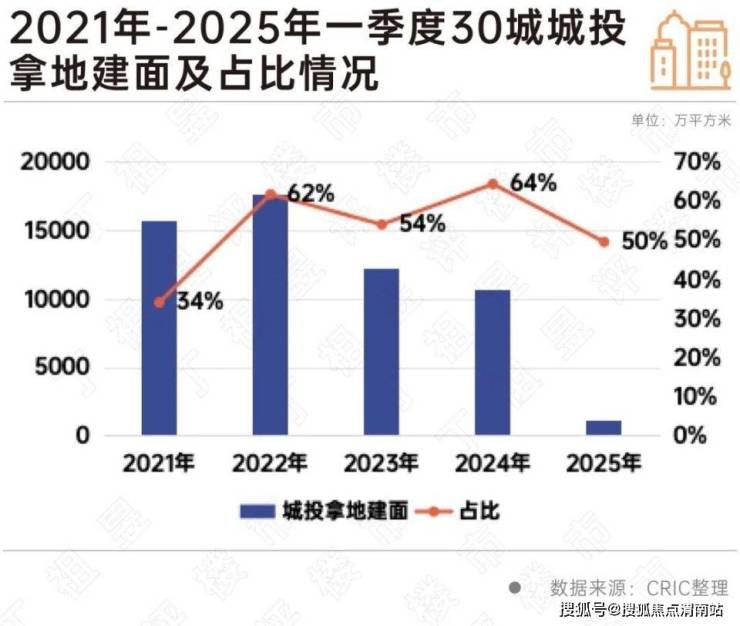 CRIC数据显示,2023年城投拿地建面12278万平方米(统计口径为30个重点城市的含宅地块,下同)同比减少30%,2024年规模进一步萎缩,同比再降13%,若与2022年高点相比,降幅已经超过40%。
