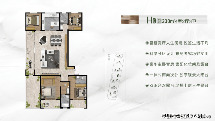 恒昌·名门胜地约230㎡四室两厅三卫,巨幕宽厅、双阳台+双露台设计,犒赏渭南进阶生活。