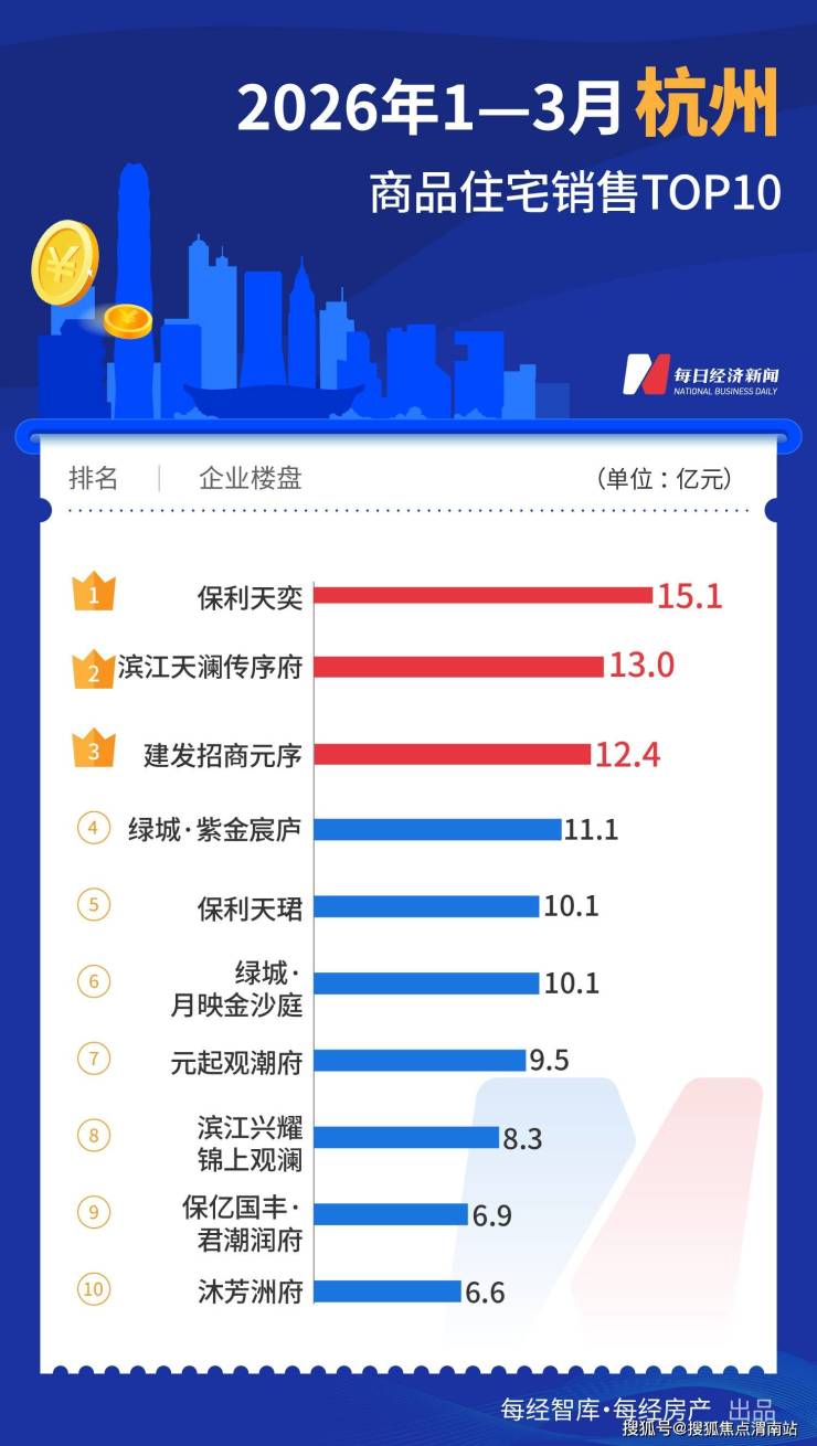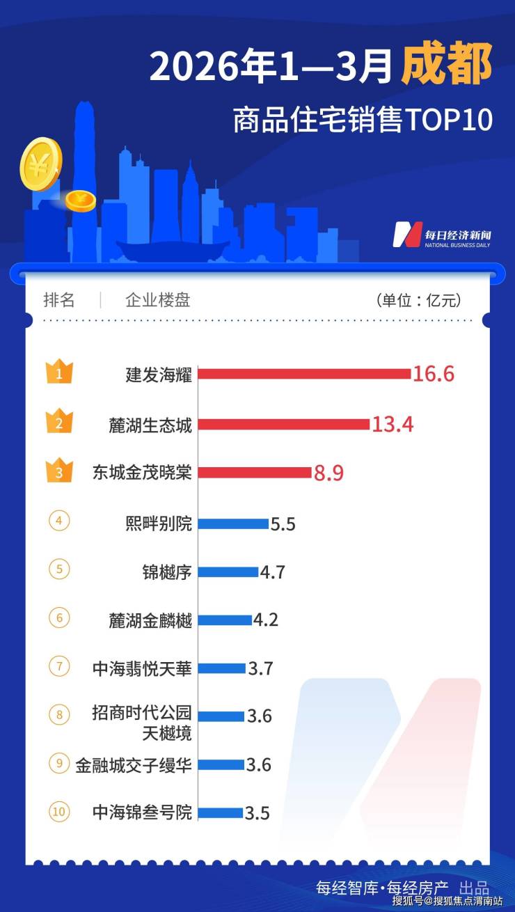 2026年一季度,全国十大热点城市新房销售TOP10榜单出炉。据中指研究院统计,深圳TOP10项目合计销售额约192亿元,以微弱优势领先上海(合计销售额约188亿元),形成“双城领跑”格局;北京、广州、杭州分别以约139亿元、122亿元、103亿元位列第三至第五位。一季度一线城市TOP10楼盘销售超600亿元。一季度一线城市TOP10楼盘销售超600亿元。
