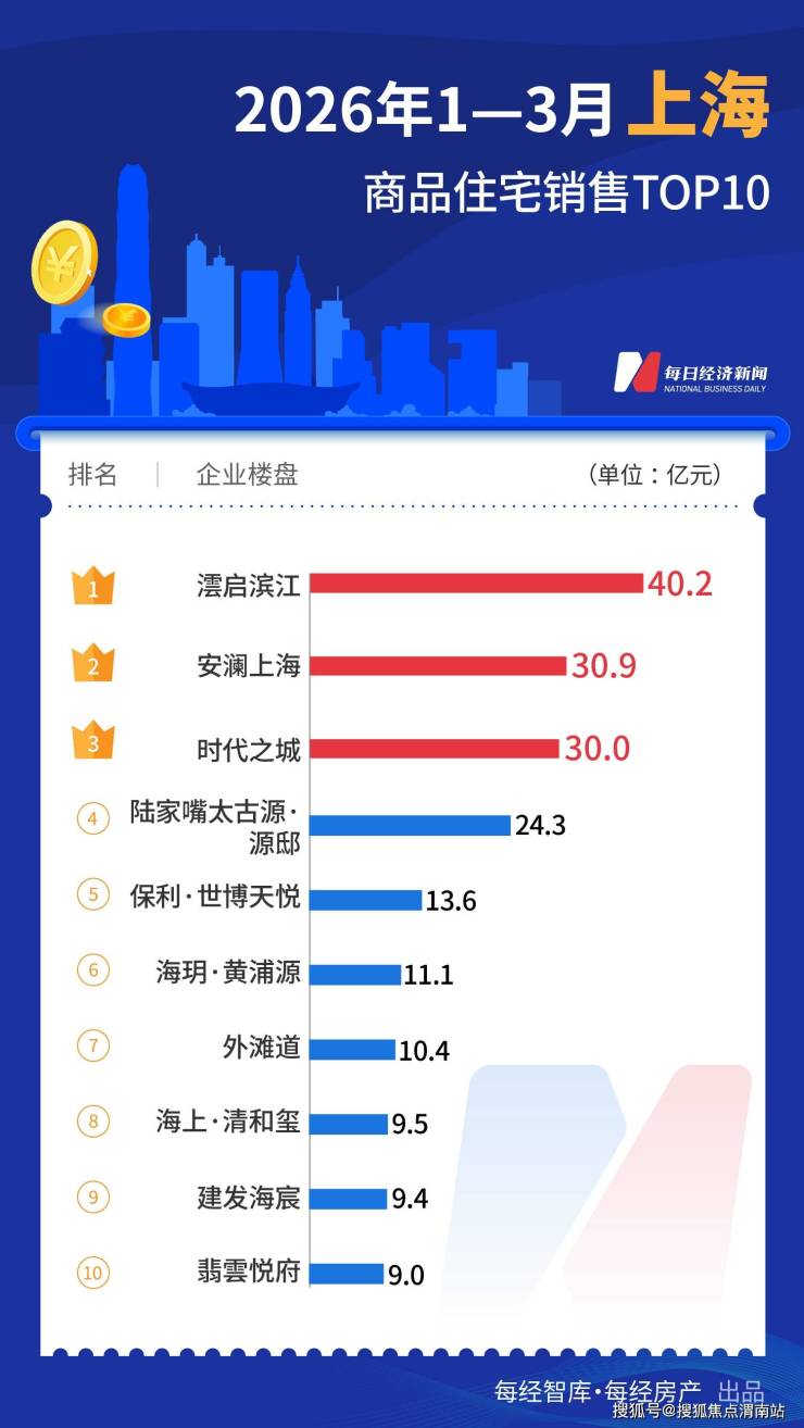 一季度一线城市TOP10楼盘销售超600亿元,深圳、上海“双城领跑”