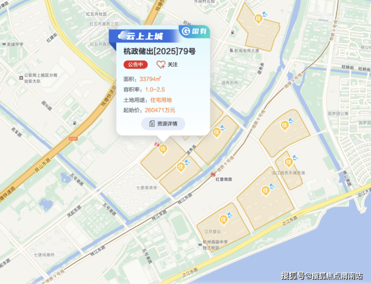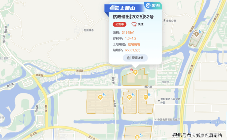 杭政储出[2025]82号即萧山区蜀山单元(蜀山南片区)XS150201-42地块,东至金西路,南至南六路,西至规划绿地,北至规划绿地。地块出让面积31348平方米,出让建筑面积37617.6平方米,出让起始价65831万元,折合起始楼面价1.75万元/平方米。