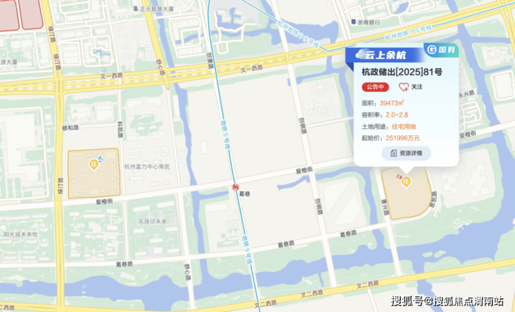 此次未来科技城单元也有地块出让。杭政储出[2025]81号即余杭区未来科技城单元YH090206-03地块,东、南至思凯路,西至景兴路,北至河道绿地。地块出让面积39473平方米,出让建筑面积110524.4平方米,出让起始价251996万元,折合起始楼面价2.28万元/平方米。