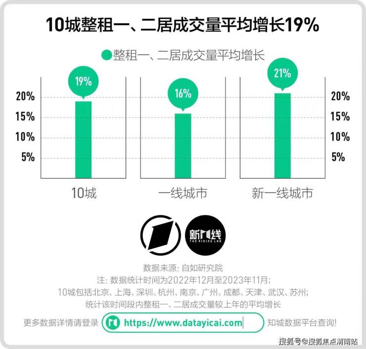 数据显示,尤其在整租领域,独居类房源正逐步走热。10城整租一、二居成交量平均增长19%。其中,多个城市整租一居的订单量在2023年实现同比增长,一线城市中广州、上海增幅最大;新一线城市中成都、武汉、杭州上涨最多。