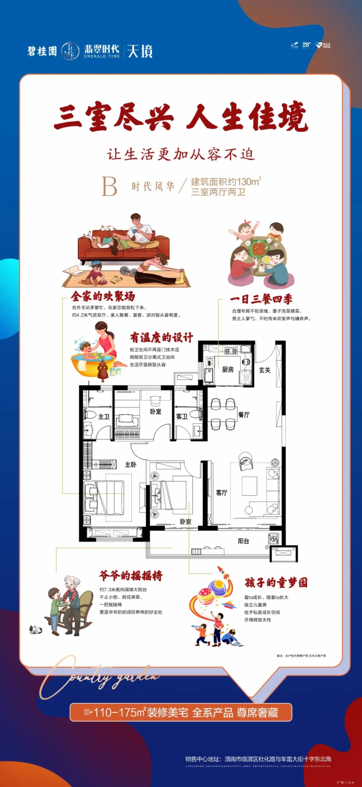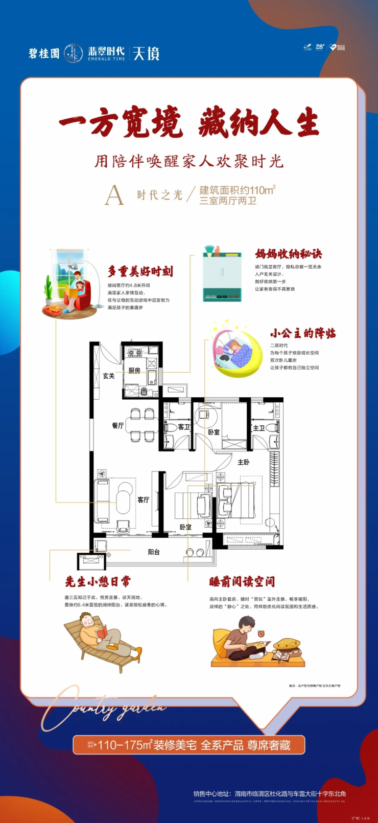 格局有多大,舞台就有多大。做人如此,而身为一套好房子,也应是如此。好的空间设计,可将几十平米的有限空间,延展出视觉上的山河林海。碧桂园翡翠时代“好产品”住宅,重视开放式布局的通透视觉设计,注重空间感体验,力求做到户户南北通透。