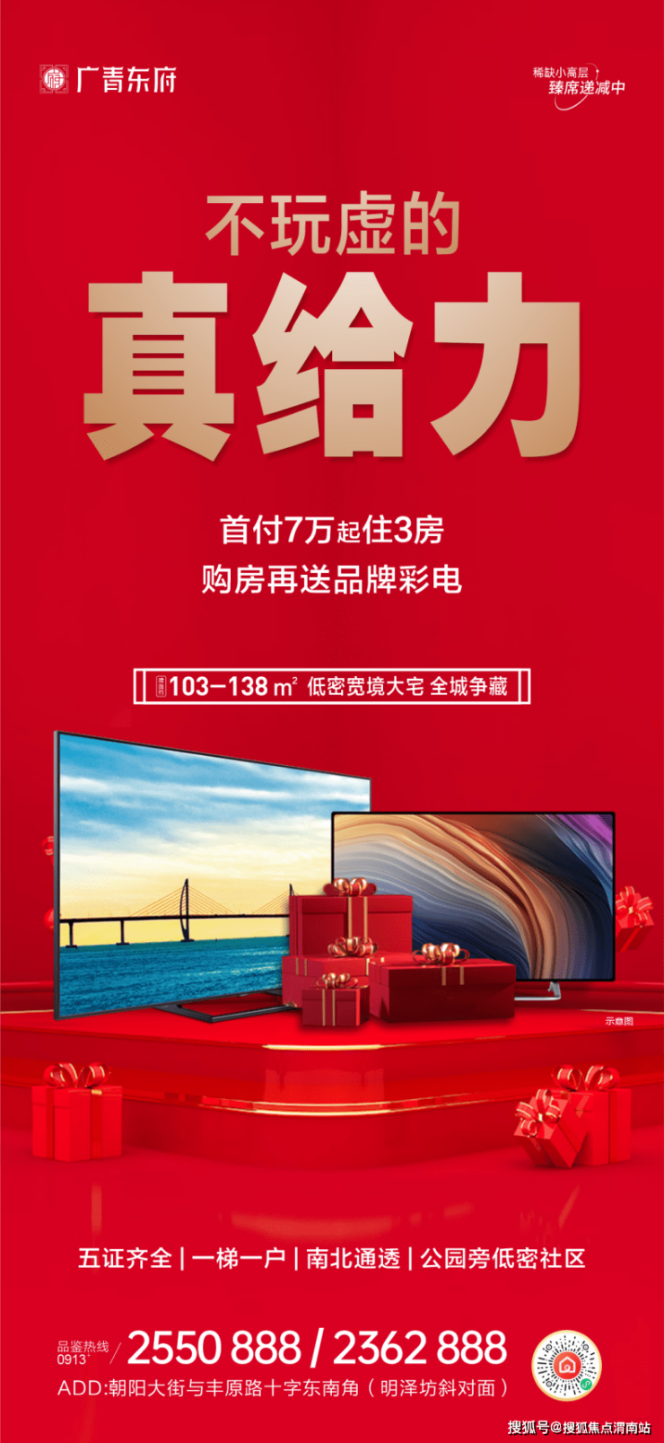 广青东府作为择址渭南城东的实景大盘,不仅品质有保障,而且目前还推出了首付7万起抢住3房,购房再送价值3000元品牌彩电的双重钜惠活动,令广大购房者无忧购好房,安心过大年!
