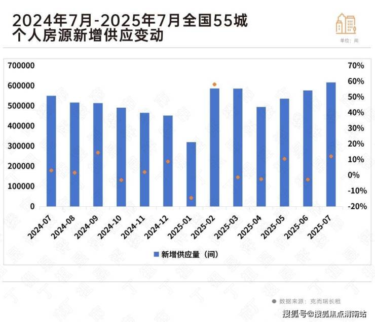 表现在数据层面,CRIC长租监测今年7月55城个人房源挂牌量达到了61.8万套,为近三年峰值。