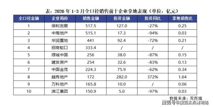 值得一提的是,在拿地决策整体趋于保守的同时,仍有部分房企押注核心地块,一季度累计投资金额超100亿元。