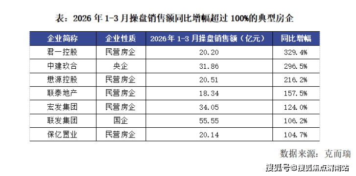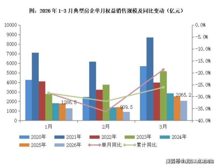 受益于假期积压需求释放,在2月春节月低基数下,3月“小阳春”初现。近日,克而瑞研究中心发布的报告显示,2026年3月,部分企业业绩大幅回暖,典型房企实现单月销售权益金额2065.2亿元,环比增长127.1%。