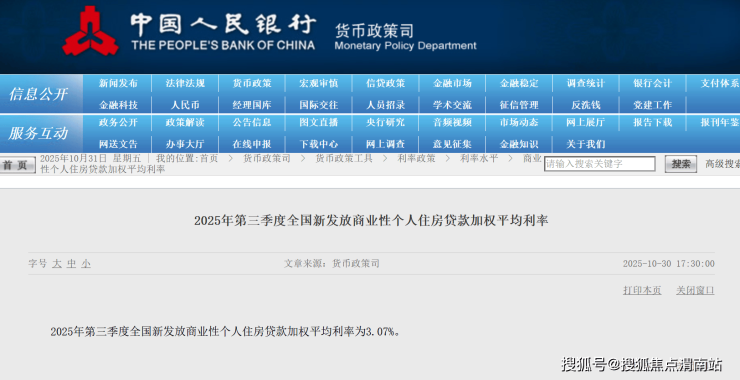 中房网讯(刘敏/文)10月30日,据央行消息,2025年第三季度全国新发放商业性个人住房贷款加权平均利率为3.07%。