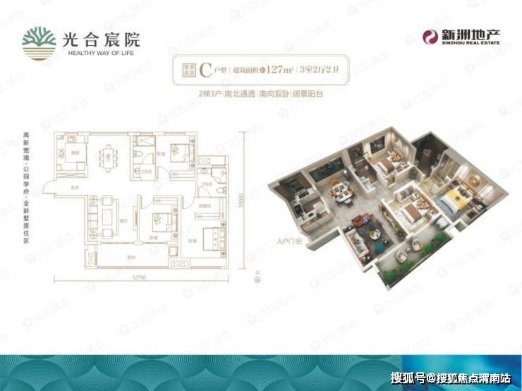 其中,首付不足15万,月供2000+,约110㎡小3室,南向3开间+双卫设计,再加上南向奢阔观景阳台,户型整体兼顾了小3室的功能性和大户型的舒适度。