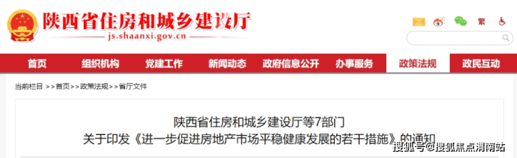 10月30日,陕西省住房和城乡建设厅网站发布了陕西省住房和城乡建设厅等7部门,关于印发《进一步促进房地产市场平稳健康发展的若干措施》的通知,从6个方面提出21条具体措施,促进房地产市场止跌回稳,加快构建房地产发展新模式,大力推动房地产市场高质量发展。