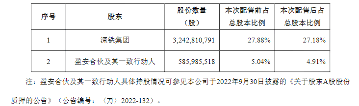 第一大股东深铁持股比例被稀释至27.18%
