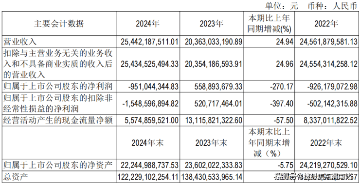 4月19日,北京老牌国资房企城建发展(SH600266,股价4.96元,市值102.96亿元)发布的2024年度报告显示,报告期内实现营收约为254.42亿元,同比增长24.94%;归母净亏损约为-9.51亿元,同比下降270.17%,由盈转亏。