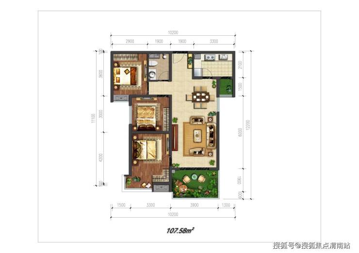 约107㎡小3室