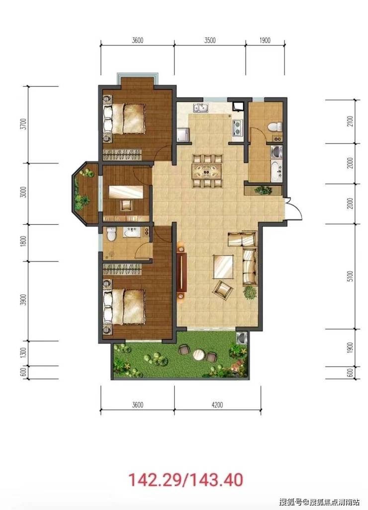 建面约142/143㎡大3室