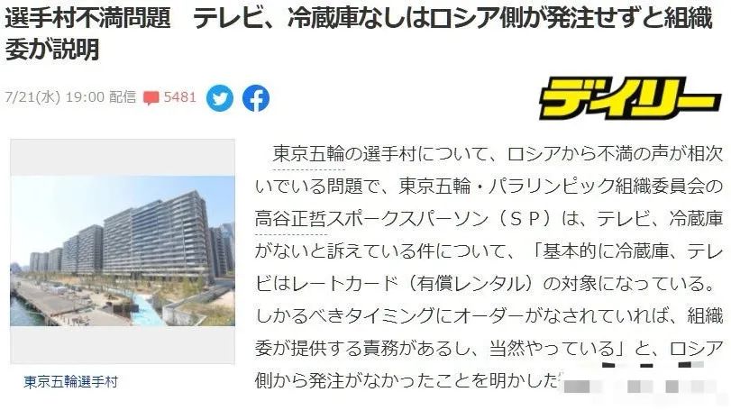 最后整的东京组委会的负责人也很委屈:冰箱电视都是有偿租赁,没付租金,当然不给配套。