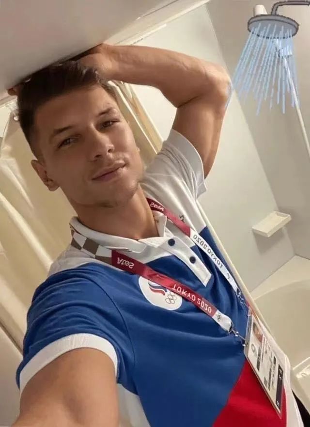 他抱怨奥运村住宿条件差,房间天花板太低,他只能歪着脖子进行拍照。