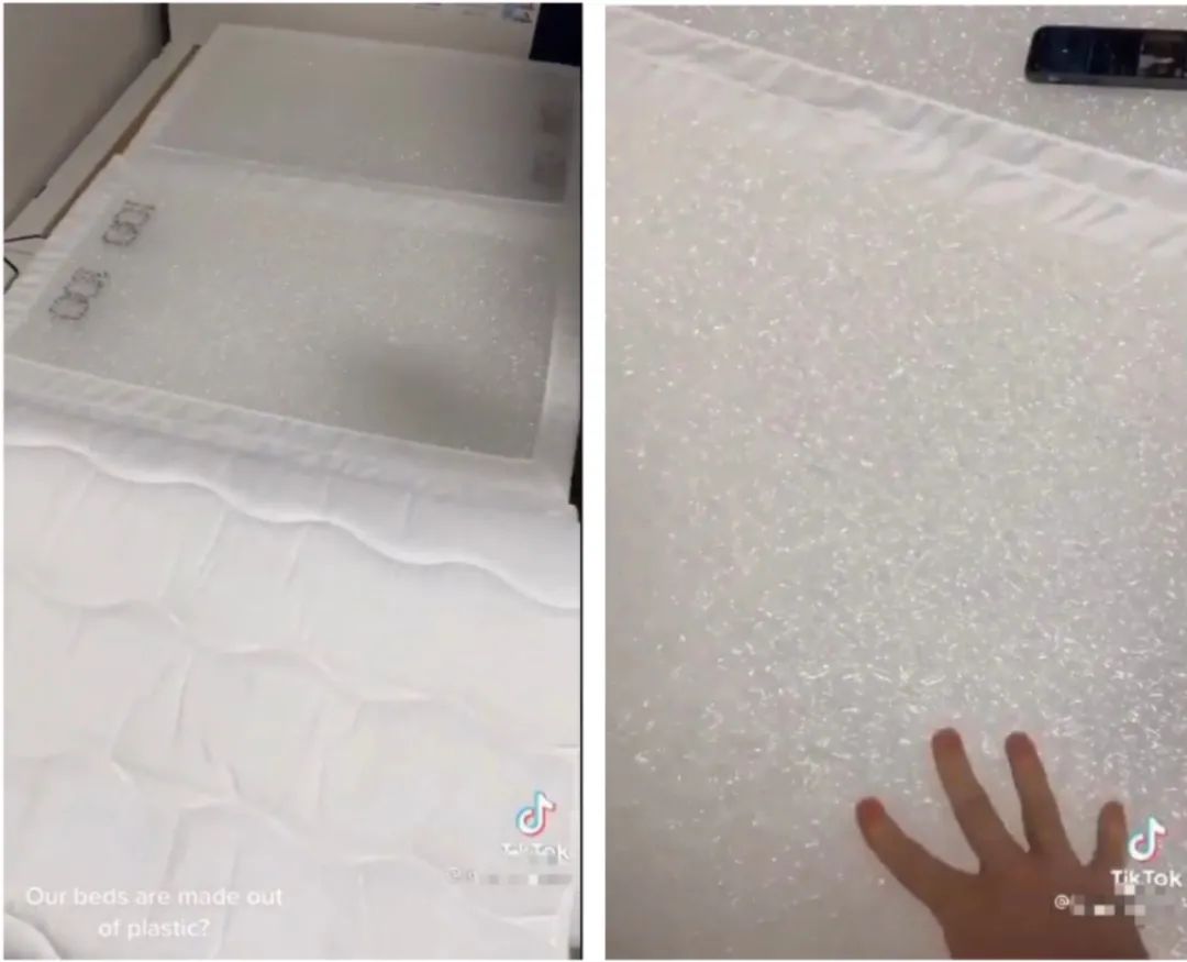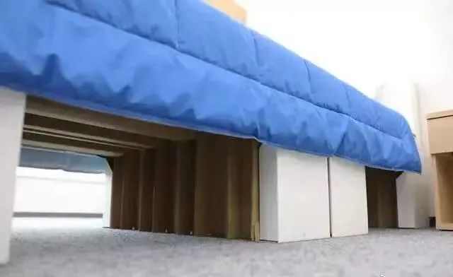 床不光用了硬纸箱,就连床垫都是塑料泡沫做的。