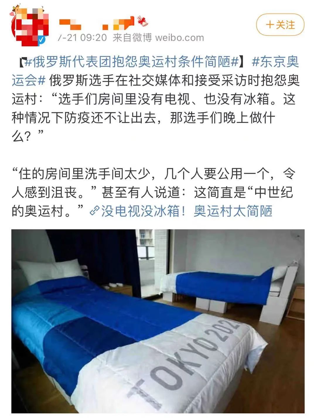 奥运村:“真的很小,你忍一下”。