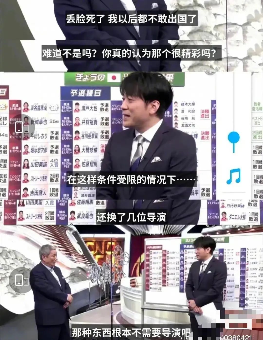 给选手们吃“福岛比目鱼”、游泳赛场出现类似排泄物的不明物体和臭味、开幕式前一天导演被解聘……