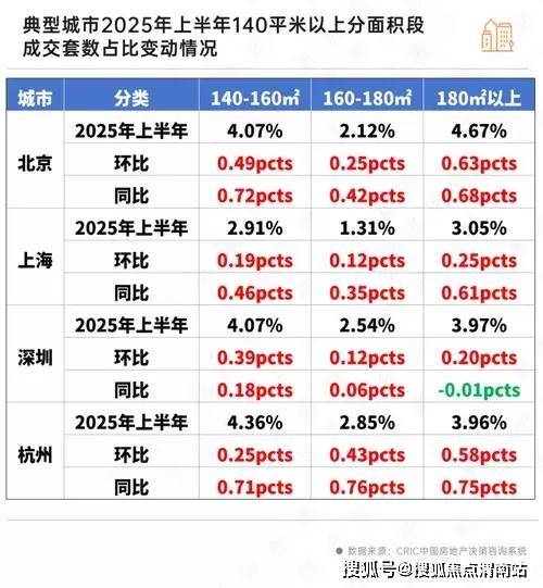 由于核心一二线城市小面积段多为一房、二房设计,户型功能性缺失且多为老旧房源,上半年选择140平米以上三房/四房的产品成交占比持增,这部分客群更看重性价比,且追求“一步到位”。