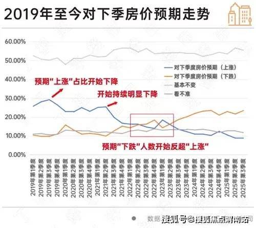 从2019年第一季度至2025年第三季度对下季度房价预期的整体趋势来看,曾经出现过多个明显变化节点,这些节点与整体市场变化有所呼应。