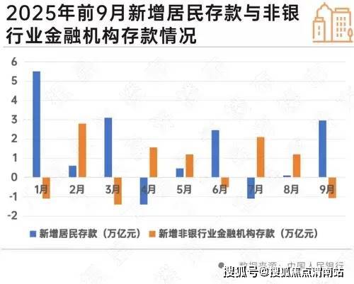 这一数据可以印证的是《2025年前三季度金融统计数据报告》,前三季度人民币存款增加22.71万亿元。其中,住户存款增加12.73万亿元,非金融企业存款增加1.53万亿元,财政性存款增加1.37万亿元,非银行业金融机构存款增加4.81万亿元。