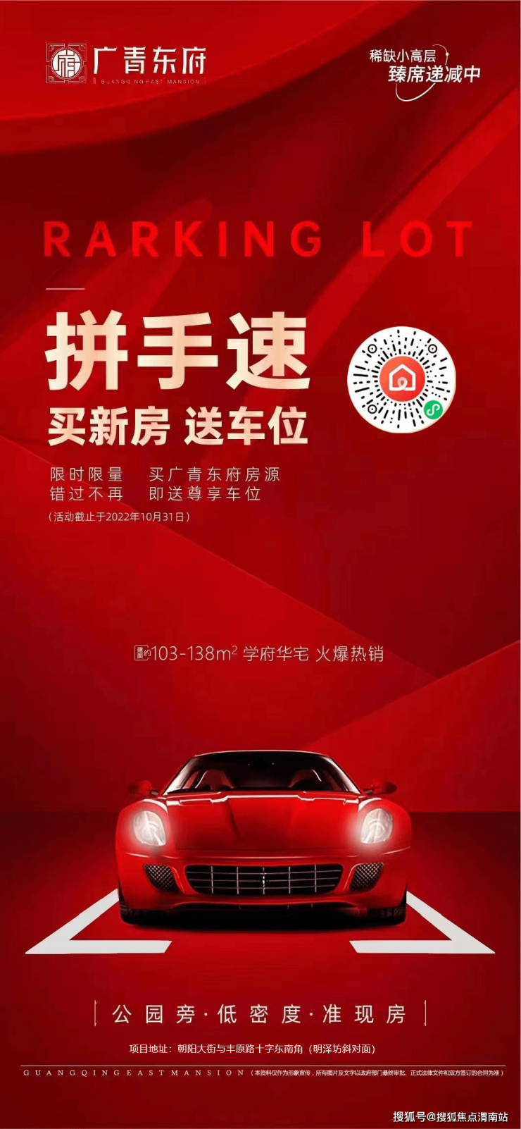 目前,广青东府建面约103—138㎡学府华宅正面向全城火热销售中,2022年11月1日前购置还可享受买房送车位活动,让安家一步到位!感兴趣的朋友快拨打400-156-0036转430535咨询了解更多项目信息吧!