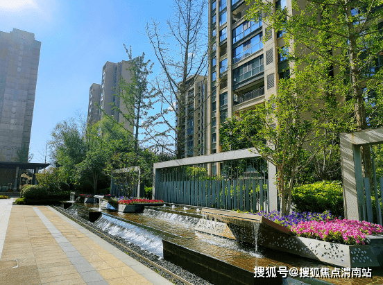 项目社区入口处的水景设计,极富层次感,更好拉进人与自然之间的距离。潺潺的水声,与繁花美景交织,让你在归家之途中,褪去忙碌一天的疲惫,身心得以重获宁静。