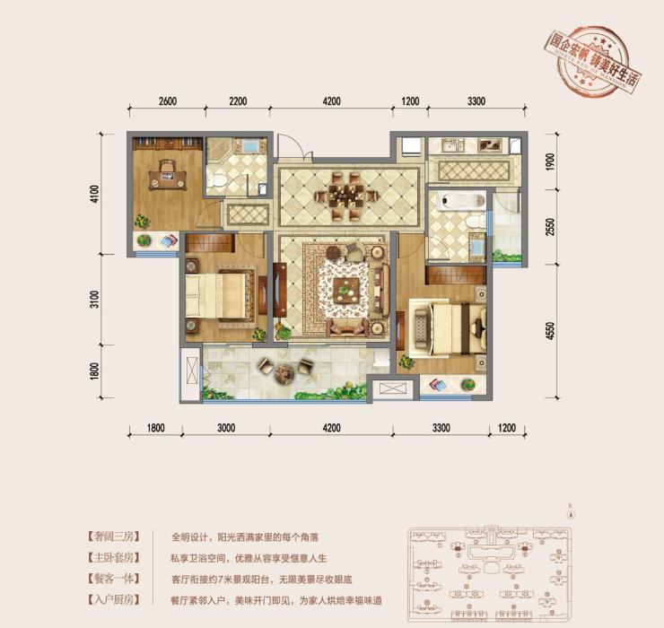 2、119.1㎡,3室2厅1卫,主卧带卫 、 双阳台,均价:待定