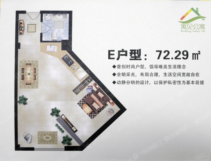 项目三:广青·甲天下,72.29㎡,2室1厅1卫,全明采光、动静分离,均价:3798 元/㎡起