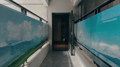 4、连廊护栏超水平设计,地面石材铺设,防水到位。