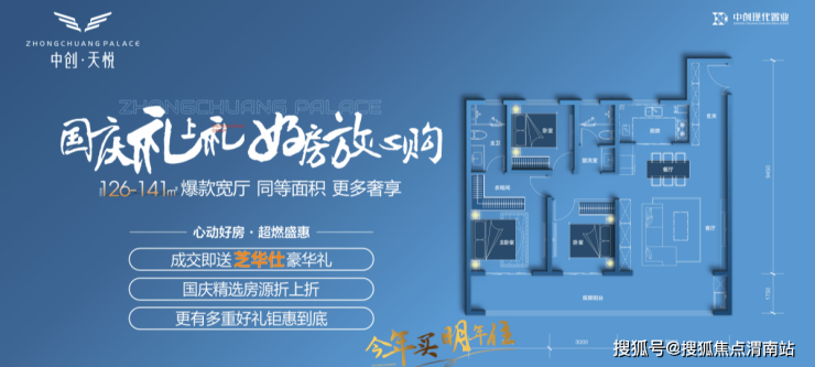 国庆礼上礼,好房放心购。十一国庆来临,中创·天悦约126-141㎡爆款宽厅、同等面积更多奢享,成交即送【芝华仕】好华丽、国庆精选房源折上折,更有多重豪礼钜惠到底,大家可前往中创·天悦营销中心了解详细情况。