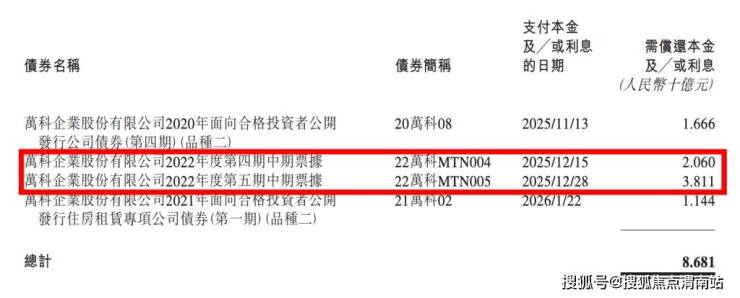 截至今年三季度末,万科已完成288.9亿元公开债务的偿还,且2027年之前已无境外公开债到期。不过,对万科而言,其年内仍有两笔境内债券将到期兑付,除了上述提及的22万科MTN004,还有一笔到期日为12月28日的22万科MTN005,两笔债券余额57亿元,需偿还本金及利息约58.71亿元。