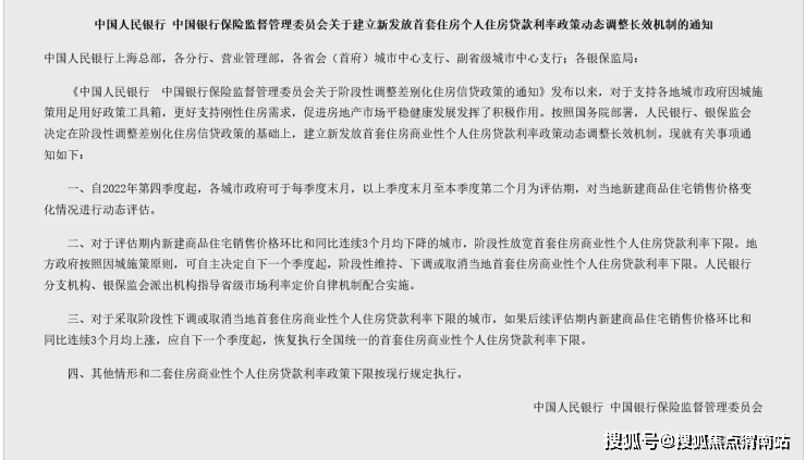 今年1月5日央行和银保监会联合下发的首套住房贷款利率政策动态调整机制第三条规定,此前阶段性放宽房贷利率下限的城市,“如果后续评估期内新建商品住宅销售价格环比和同比连续3个月均上涨,应自下一个季度起,恢复执行全国统一的首套住房商业性个人住房贷款利率下限。”