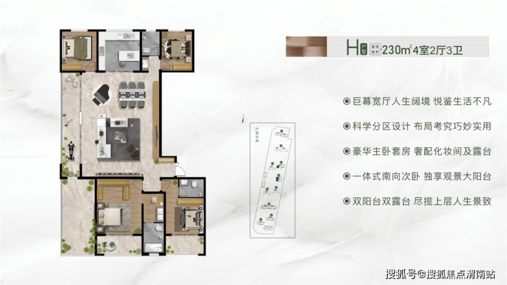 恒昌·名门胜地约230㎡四室两厅三卫,巨幕宽厅、双阳台+双露台设计,犒赏渭南进阶生活。