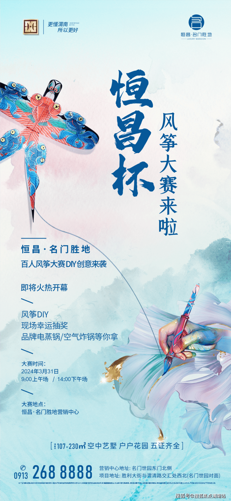 手绘蓝天·心系传统,【恒昌杯】风筝大赛将于2024年3月31日举行,大赛分上午9点场,下午14点场。品牌电蒸锅,空气炸锅,电烤箱……活动现场更有幸运抽奖来袭。