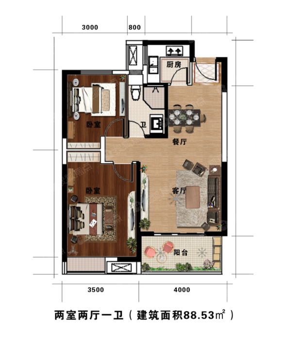 2、华盛公寓50-140㎡智趣空间,涵盖一室、两房、三居,适合各种人群置业于此;