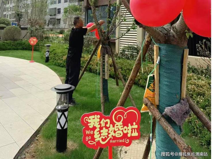 早在婚礼筹备阶段,物业团队便与新人展开细致入微的沟通,深入了解他们对婚礼的憧憬与需求。为打造梦幻的婚礼现场,物业精心准备了鲜艳的红色地毯,从小区大门口一路蜿蜒至新人所居住的楼栋,犹如一条幸福的丝带,迎接新人的到来;整齐排列的路引错落有致地分布在红毯两侧,为婚礼现场增添了一份庄重与浪漫;五彩斑斓的气球,或组成拱门,或点缀在各个角落,营造出甜蜜温馨的氛围。每一处装饰细节,都凝聚着物业工作人员对新人的美好祝福。
