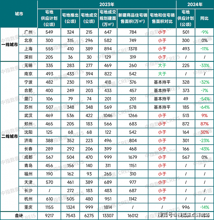 多地缩减2024年宅地供应计划,重点22城供地规模同比降约10%