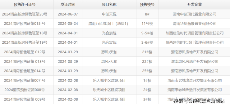 五、渭南楼市上周(2024年6月10日-6月16日)预售证公示信息