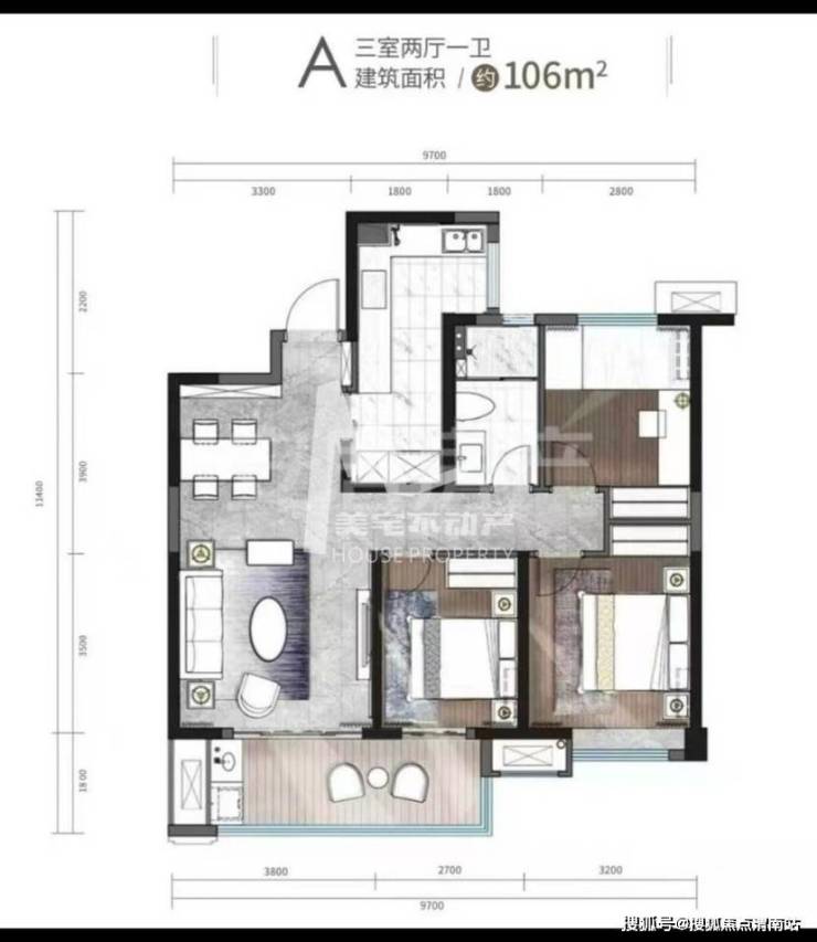 13、恒大珺睿府三期 106㎡三室两厅一卫 精装55万