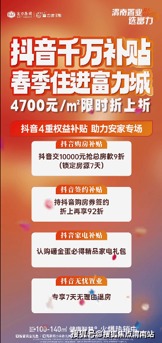 2025年1月,富力城返乡置业5重礼来袭,富力城建面约100-140㎡,现房年度大促,限时4980元/㎡起。