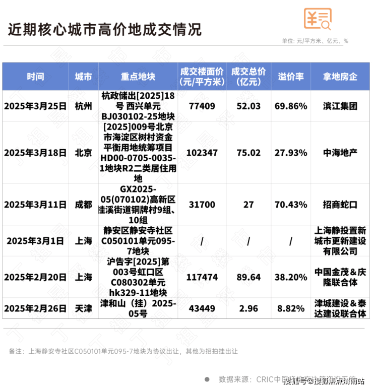 3、高价地背后实际也反映出企业投资信心持续修复,不过在市场承压的背景下,房企愈加注重“利润率”和“安全性”,核心城市优质宅地则成为头部房企低风险配置的首选。从近期高价地拿地房企可以看出,当前投资的房企仍以央国企和有实力的民企为主,拿地“窗口期”聚焦核心城市核心地块加仓补货,一季度拿地并能在年内能形成可售货值。