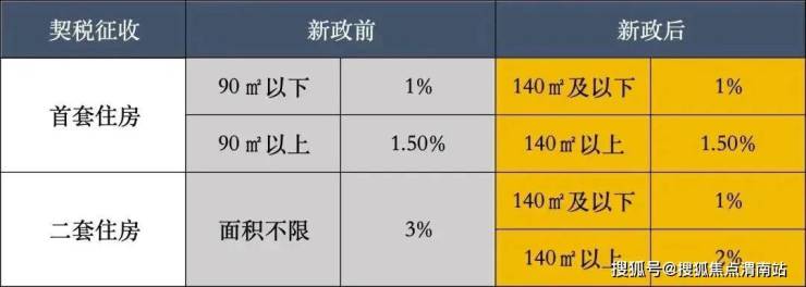 ·首套住房:140㎡及以下1%,140㎡以上1.5%