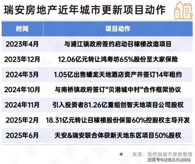 除了降低前期投入成本,挖掘项目价值之外,合理的退出机制也同样重要。近年来,瑞安房地产频繁出售多个稳定运营期的商业重资产项目部分股权,在快速回笼大额资金、实现资产出表的同时,保留了持续的运营收益权。